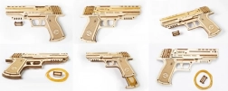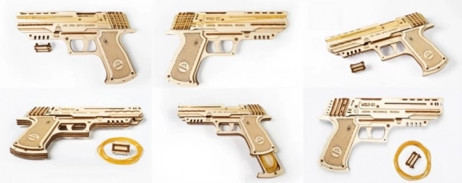 Das UGEARS-Modell Wolf-01 ist eine detaillierte hölzerne Nachbildung einer Pistole mit Gummibandantrieb, die Sie ohne Klebstoff nur mit passgenau ausgeschnittenen Teilen zusammensetzen. Nach dem Zusammenbau erhalten Sie ein funktionsfähiges mechanisches Modell, das zuverlässig Gummibänder abfeuert und Ihnen praktisch zeigt, wie Zahnräder, Abzugsmechanik und Materialelastizität zusammenspielen.