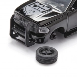 RAM! Das weltbekannte Symbol für einen kraftvollen und leistungsstarken Pickup mit V8-Herz. Das Modell im Maßstab 1:50 zeigt die tatsächliche Größe und Funktionalität dieses Pickups. Motorhaube, Türen und Heckklappe lassen sich öffnen. Die neueste SIKU-Innovation verbirgt sich in den Rädern, die erstmals abnehmbar sind, sodass Ihr Kind das Reparieren des Fahrzeugs nachspielen kann. Die Polizeiversion ist mit typischen drehbaren Warnleuchten und charakteristischen Aufdrucken versehen.