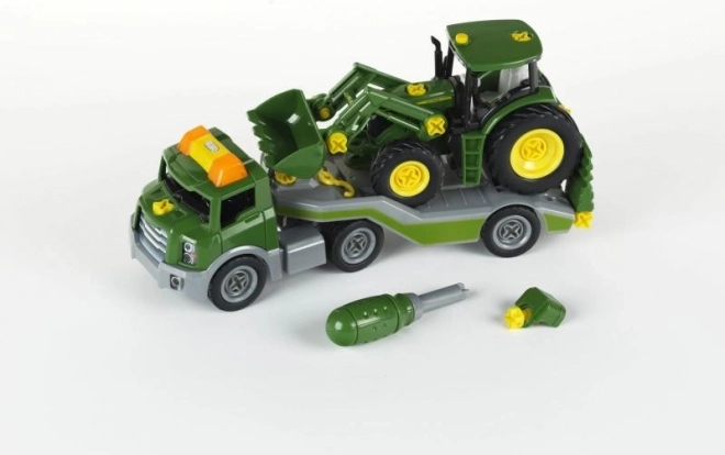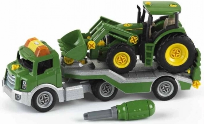 Entdecken Sie den realistischen JOHN DEERE Traktor, den Kinder selbst zusammenbauen und auf dem beiliegenden Anhänger transportieren können. Das Bauset fördert Geduld, logisches Denken sowie Hand-Auge-Koordination, während das bekannte grün-gelbe JOHN DEERE Design ein authentisches Farmerkennis vermittelt.