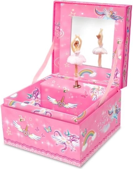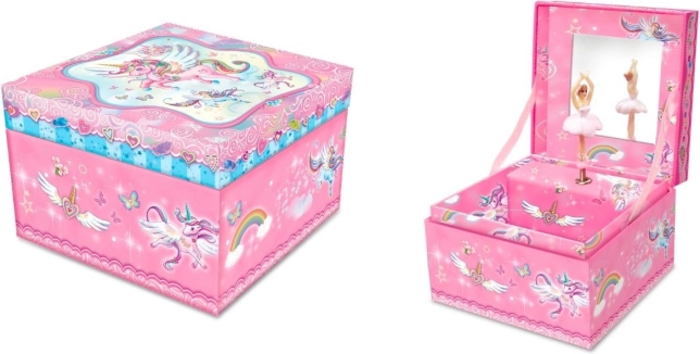 Diese wunderschöne Schmuckschatulle mit Einhornmotiv ist ideal zum Aufbewahren kleiner Schätze und Schmuckstücke. Sobald Sie den Deckel öffnen, beginnt das Einhorn, zur klassischen Melodie zu tanzen. Nach dem Ende der Melodie ziehen Sie einfach den Mechanismus für eine weitere Wiedergabe auf.