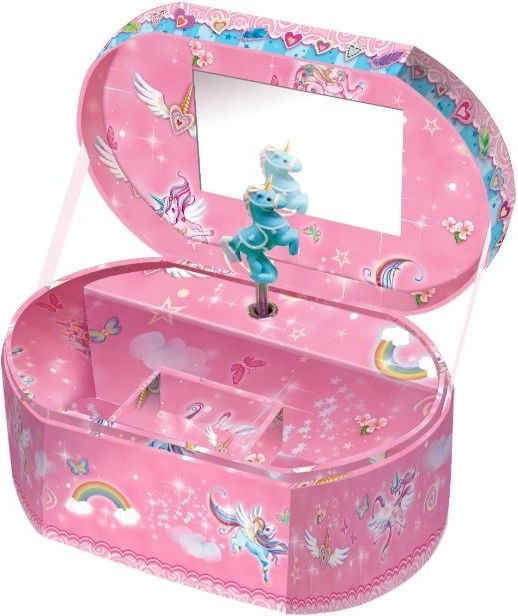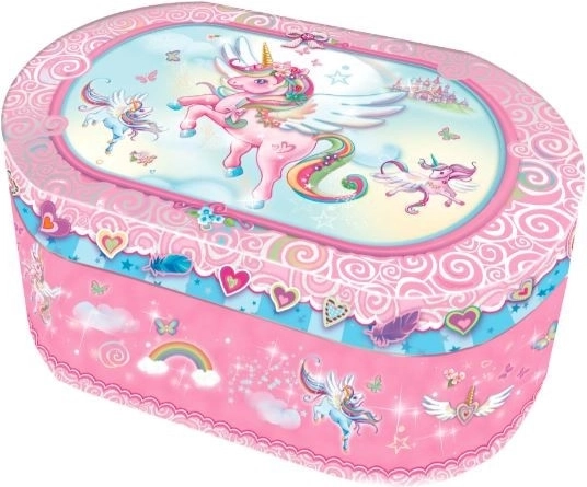 Die Box enthält einen Spiegel zur Kontrolle Ihres Aussehens und ein separates Fach zur Aufbewahrung kleiner Schätze. Dies macht dieses Produkt zu einem perfekten Accessoire für jedes Kinderzimmer oder als wunderschönes Geschenk für Einhornliebhaber.