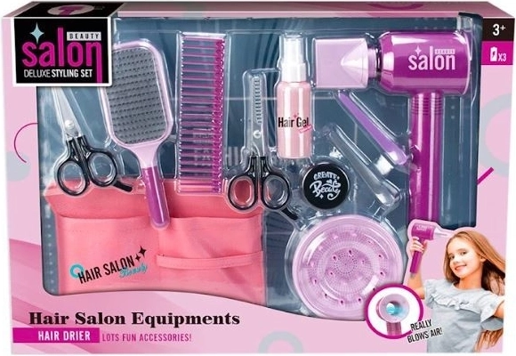 Geben Sie Ihren Kindern die Möglichkeit, mit diesem erweiterten Frisier-Set zum Friseur zu werden. Das Set beinhaltet: