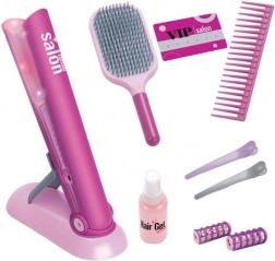 Friseursatz mit Batterien ist ideal für kleine Stylisten, die alles für das Styling benötigen. Das Set umfasst alles von einem Haarglätter bis zu einer Bürste und Kämmen.