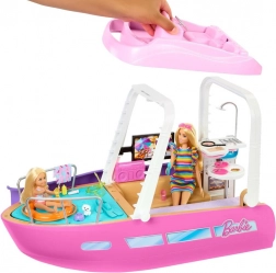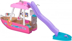 Dieses stylische Boot mit den Abmessungen von ca. 91 cm Breite und 30 cm Höhe bietet viel Platz für Puppen und ihre Freunde. Kinder können das Boot auf dem Oberdeck steuern, in der Sonne entspannen und über die lila Rutsche direkt in den blauen Pool rutschen. Das abnehmbare Oberdeck gibt den detailliert gestalteten Innenraum für einfaches Spielen frei.