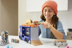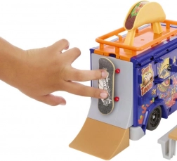 Schließen Sie sich dem Adrenalin des Skateboardings mit dem Taco Skateboard-Set an. Dieser tolle blau-orange Lastwagen mit einem riesigen Taco auf dem Dach ermöglicht fantastische Tricks und dient als tragbarer Speicher.