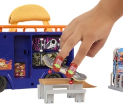 Das Taco auf dem Dach dient als Griff, die Rampe kann vertikal aufgestellt werden und eine Bank oder Rampe für mehrere Trickmöglichkeiten verwenden. Zubehör kann innen oder auf dem Lastwagen verstaut werden. Skateboard für Fingerskate in diesem Set ist einzigartig und in Zusammenarbeit mit Tony Hawk entwickelt. Zusätzliche Skateboards und Schuhe werden je nach Verfügbarkeit separat verkauft.