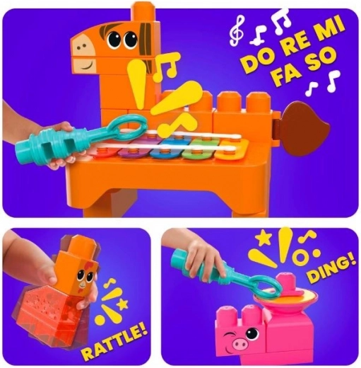 Entdecken Sie die Magie des Bauens mit Mega Bloks Bausteinen, die die sensorische Entwicklung der Kinder unterstützen. Dieses Vorschul-Bauset enthält 45 große Bausteine, die für Kinder im Alter von 1-3 Jahren geeignet sind. Tiere wie Pferd, Kuh oder Küken, jedes bietet ein eigenes Musikelement wie Xylophon, Trommel oder Rassel. Kinder haben nicht nur Spaß, sondern lernen auch, bis zu 6 Lieder zu spielen, was ihre motorischen und kognitiven Fähigkeiten erweitert.