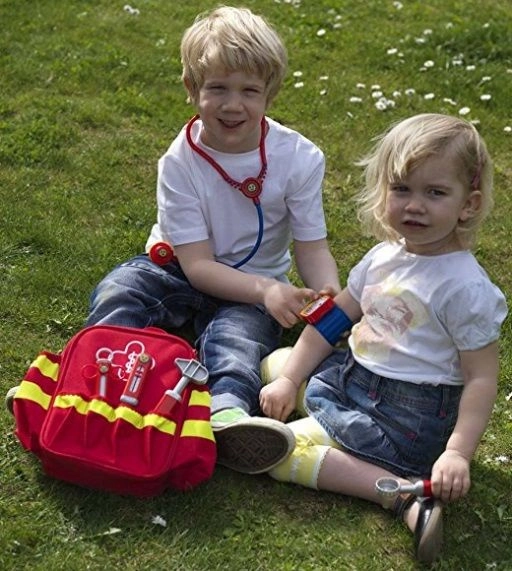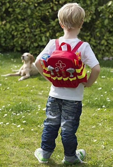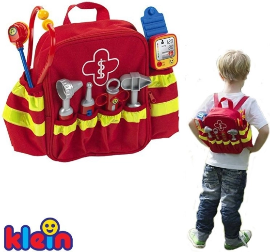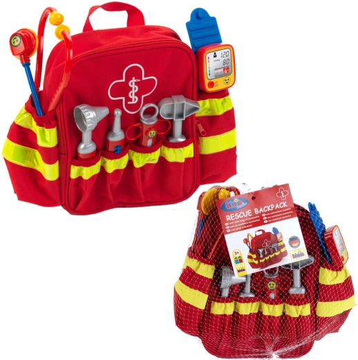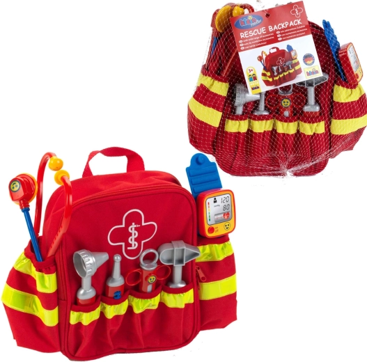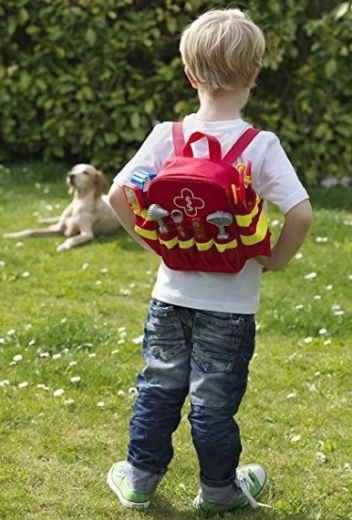 Zum Set gehören sechs klassische „Praxis“-Hilfsmittel: Stethoskop zum Abhören des Herzens, Otoskop für die Ohren, Thermometer, Reflexhammer, Spritze und Blutdruckmessgerät. Hochwertige Verarbeitung und glatte Kanten sorgen dafür, dass das Spiel für Kinder ab 3 Jahren sicher ist. Dank der verstellbaren Schultergurte passt der Rucksack bequem den meisten Vorschulkindern.