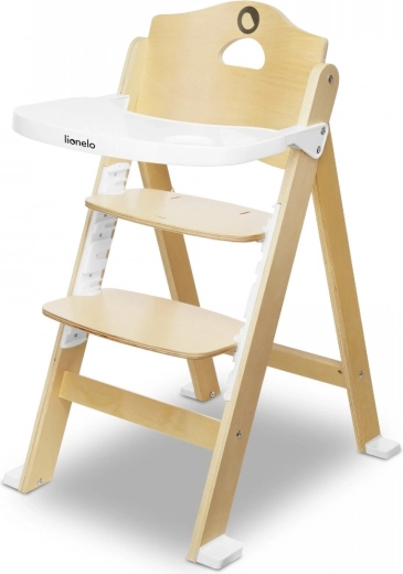 Der robuste Rahmen aus Naturholz und langlebigen Kunststoffelementen sorgt für Stabilität und Sicherheit. Der 5-Punkt-Sicherheitsgurt hält kleinere Kinder zuverlässig, während ältere den Stuhl ohne Tablett direkt am Familientisch nutzen können. Ein praktischer Griff erleichtert das Tragen, und für die Einstellung ist kein Werkzeug erforderlich.