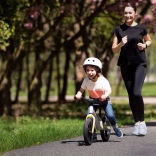 Für Sicherheit sorgen die Lenkeinschlagbegrenzung, rutschfeste Griffe und der weiche Schutz am Lenker. Das Laufrad wächst dank der stufenlosen Höhenverstellung von Sattel und Lenker mit dem Kind mit. Praktische Details wie der integrierte Tragegriff und die geformte Fußstütze erhöhen den Komfort beim Fahren und Transport.