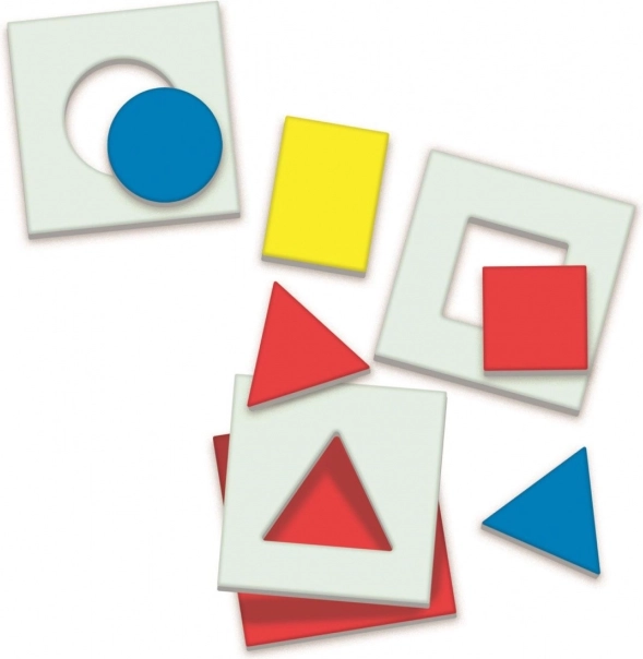 Beim Spielen mit dem Set Formen und Farben legt das Kind Ausstanzungen auf farbige Tafeln und ordnet sie den entsprechenden Pappfiguren zu oder steckt die Figuren in die Ausstanzungen. Das Spielzeug bietet viele Aufgaben zum Erkennen von Formen und Farben durch Beobachtung und praktisches Ausprobieren.