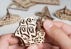 Ugears 3D mechanisches Holzpuzzle – 4 mechanische Anhänger Schiffe
