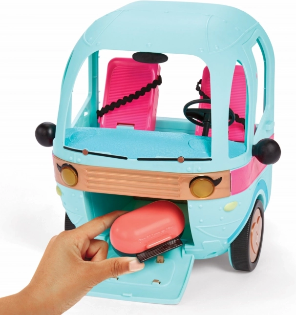 Der L.O.L. Surprise! Glam N' Go Camper ist das ultimative Fahrzeug für deine L.O.L. Surprise Puppen, mit dem sie stilvoll reisen können. Das Wohnmobil enthält über 50 Überraschungen zum Auspacken, mehr als 10 Bereiche zum Spielen und Treffen und bietet Platz für LOL Surprise OMG Modepuppen sowie LOL Surprise Puppen. Das Heck des Campers lässt sich öffnen. Nach dem Spielen können alle Accessoires und Teile im Inneren verstaut werden.