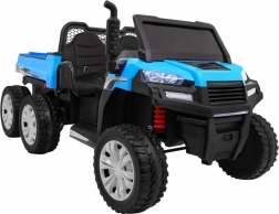 Das Modell ist für zwei Kinder konzipiert – die breite Sitzbank aus ECO-Leder und Sicherheitsfeatures sorgen für eine angenehme, ruhige Fahrt. Die hintere kippbare Ladefläche (Mulde) mit öffnender Heckbordwand lädt zum fantasievollen Farmspiel ein. Eltern schätzen die 2,4-GHz-Fernsteuerung mit drei Geschwindigkeiten und Notstopp. Das Audio-Panel mit MP3/SD/AUX/Bluetooth sowie Sounds im Lenkrad begeistert kleine Fahrer.
