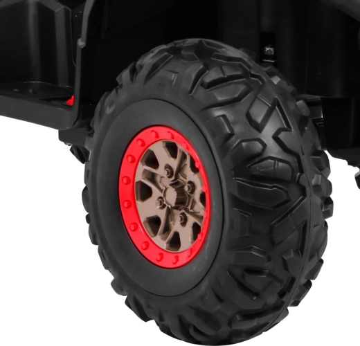 Kräftiges und stabiles Kinder-Quad, das dank 4 Federstoßdämpfern, hoher Bodenfreiheit von 21 cm und breiten EVA-Schaumrädern (35 × 15 cm) Unebenheiten souverän meistert. Mit der Wahl des Antriebs von 2 oder 4 Rädern passen Sie den Fahrspaß leicht an Gelände und Können des Kindes an.