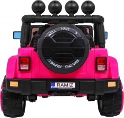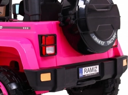 Eltern schätzen die 2,4-GHz-Fernbedienung mit drei Geschwindigkeiten und der Sicherheitstaste STOP. Der Innenraum bietet einen bequemen Sitz mit 5-Punkt-Gurten, zu öffnende Türen mit Verriegelung und ein funktionsreiches Audio-Panel mit MP3, USB, SD und AUX-Eingang sowie vorinstallierten Melodien. Das praktische Fach im hinteren Reserverad nimmt Kleinigkeiten für unterwegs auf.