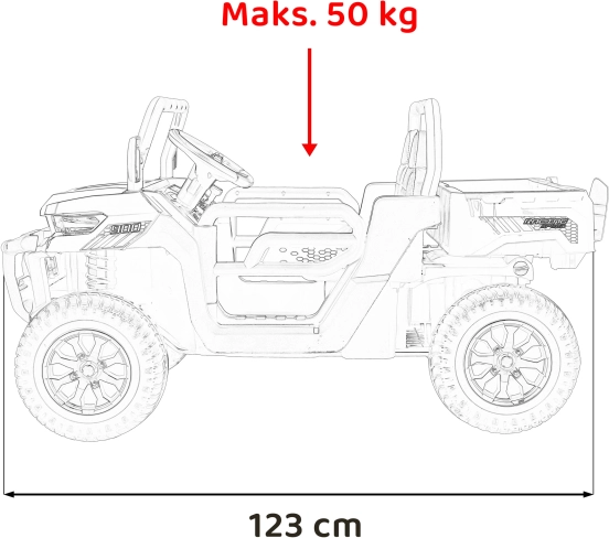 Dank vier leistungsstarken 45W-Motoren meistert das Auto verschiedenes Gelände und sorgt für unvergesslichen Fahrspaß.