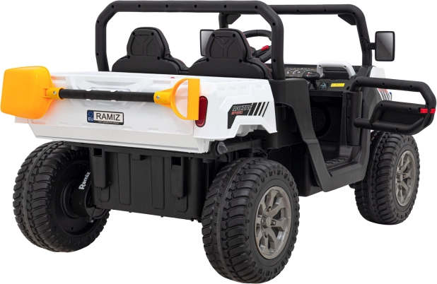 Das Auto ist mit einem elektrischen Kipper mit öffnender Heckklappe ausgestattet, was noch mehr Spielmöglichkeiten für kleine Abenteurer bietet.