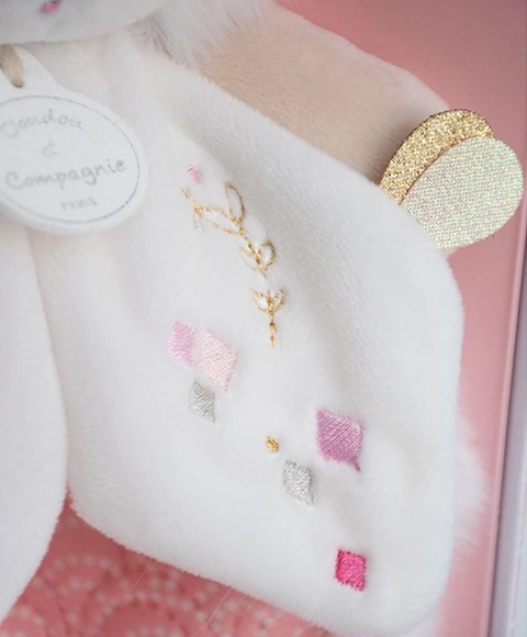 Das Plüschhäschen ist so gestaltet, dass es weich und angenehm zu berühren ist, was es zum idealen Begleiter für die Kleinen macht. Das Häschen hat eine attraktive beige Farbe mit rosafarbenem Bauch, was ihm ein reizendes Aussehen verleiht. Es wird in einer eleganten Geschenkbox geliefert, die selbst ein kleines Kunstwerk ist und dieses Produkt ideal zum Verschenken macht.