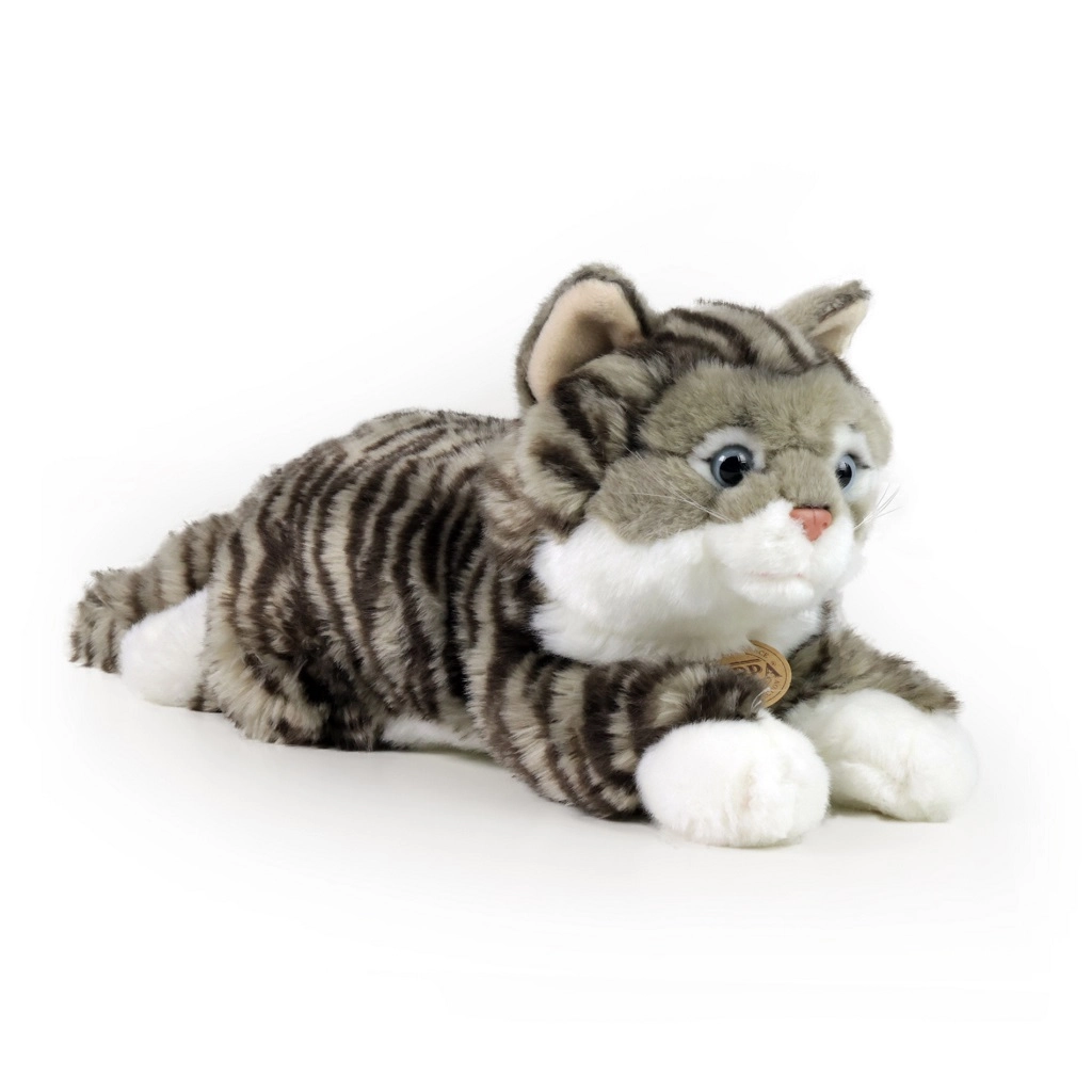 Diese graue getigerte Katze ist der ideale Begleiter zum Kuscheln, Spielen und Einschlafen. Präzise Handarbeit und das detailreiche Tabby-Muster verleihen ihr ein authentisches und niedliches Erscheinungsbild, das Kinder sofort lieben werden. Weicher, angenehmer Plüsch sorgt bei jeder Umarmung für Komfort.
