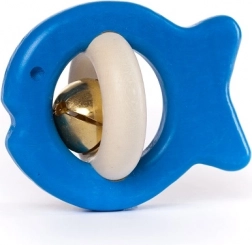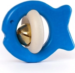 Diese hochwertige Holzrassel in Fischform besteht aus nat7rlichen Materialien (Holz und Metall) und erf7llt alle europ7ischen Sicherheitsnormen. Dank der ergonomischen Form l7sst sie sich auch von den kleinsten H7ndchen leicht greifen und ist ideal f7r die ersten Entdeckungen von Kl7ngen und Texturen. Das integrierte Gl7ckchen ist sicher befestigt und sein Klang ist angenehm sanft.