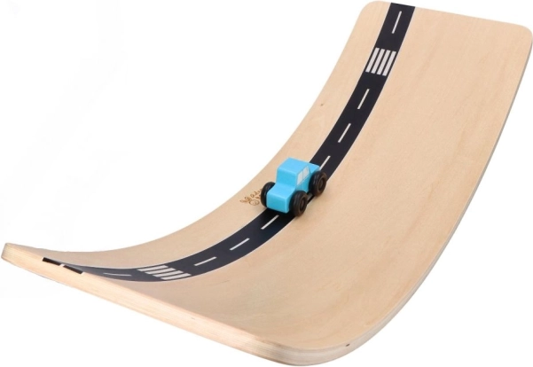 Dieses Balancebrett ist ein ideales Hilfsmittel zur Übung des Gleichgewichts, zur Stärkung der Körpermitte und bietet unzählige Spielmöglichkeiten. Dank seinem speziellen Design mit Filz und dem beigelegten Holzauto mit Straßendesign ist es nicht nur ein großartiges Werkzeug für körperliche Aktivität, sondern auch ein stilvolles Accessoire für das Kinderzimmer oder Spielezimmer.