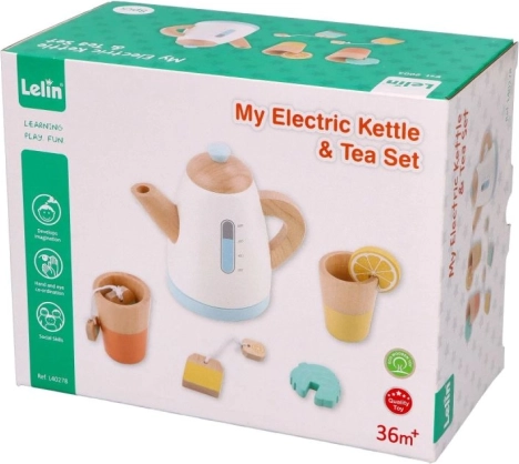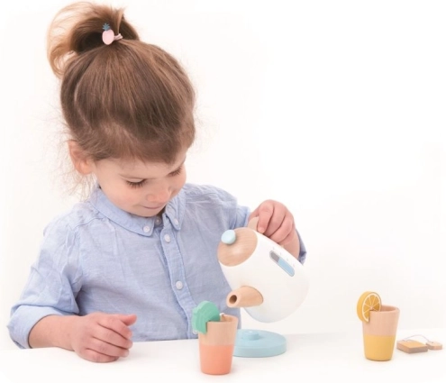 Das Set ist mit realistischen Details ausgestattet, wie Zitronenscheiben, Teebeuteln und pastellfarbenen Farben, die die Aufmerksamkeit der Kleinen auf sich ziehen.
