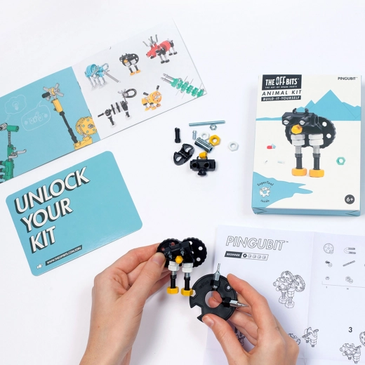 Entdecken Sie das kreative OffBits PinguinBit Konstruktionsset für Kinder ab 6 Jahren, das Kreativität, Feinmotorik, logisches Denken fördert und den Bereich STEAM unterstützt. Mit farbigen Schrauben, Muttern und geformten Bauteilen bauen Sie den PinguinBit und unendlich viele eigene, fantasievolle Kreationen.