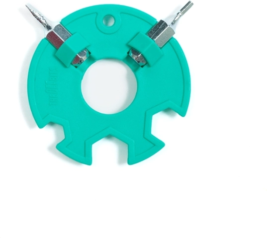 Das universelle Werkzeug im Set erleichtert das Anziehen und Lösen von Verbindungen. Die Metall- und Kunststoffteile halten wiederholtes Auf- und Abbauen ohne Funktionsverlust aus.