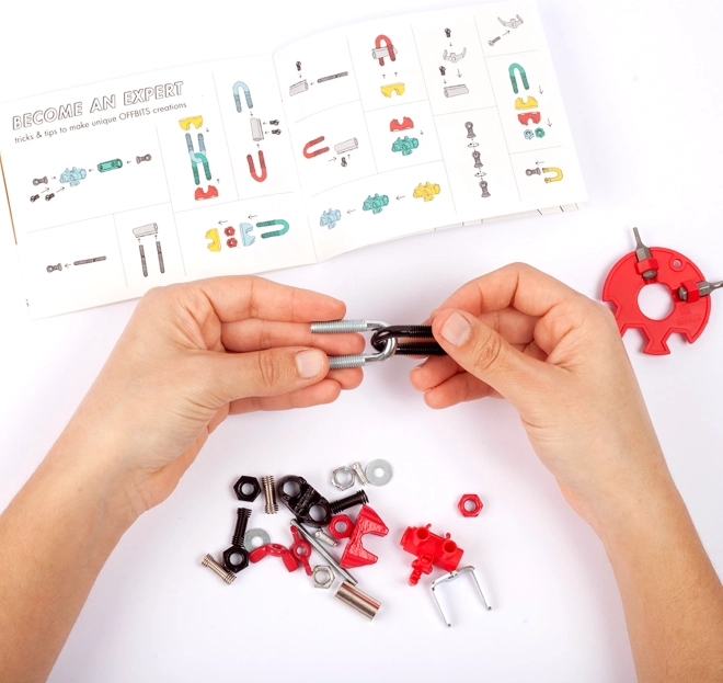 Der THE OFFBITS ArtBit Bausatz bietet eine clevere Kombination aus farbigen Muttern, Schrauben und geformten Teilen, mit denen Kinder drei empfohlene Modelle sowie eigene Kreationen nach Fantasie bauen können. Das Set unterstützt Lernen in den STEAM-Bereichen – Wissenschaft, Technologie, Ingenieurwesen, Kunst und Mathematik – und bleibt dabei spielerisch und intuitiv.