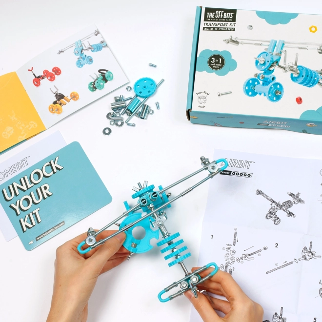 Entdecken Sie die Welt des Konstruktionsspaßes mit The OffBits FlugzeugBit – bauen Sie ein Jet-Flugzeug für Ihren Roboter, ein Rennrad oder einen Nutzwagen und erschaffen Sie eigene originelle Erfindungen. Das Set enthält ein Werkzeug für einfaches Verschrauben sowie clevere Verbinder, die Präzision und Geschick fördern.