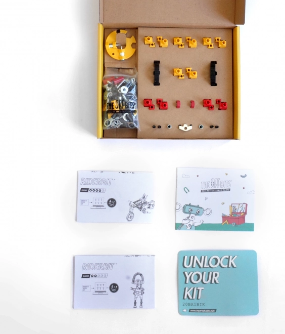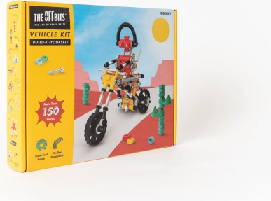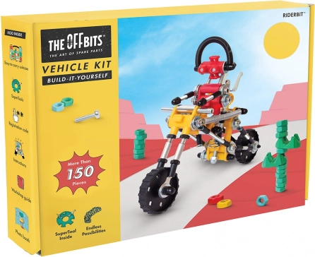 RiderBit von The OffBits ist ein unterhaltsamer und lehrreicher Baukasten, mit dem Kinder einen Roboter auf einem Motorrad und weitere Modelle bauen. In der Packung finden Sie über 200 hochwertige Teile, einen Radsatz und clevere Verbindungselemente, die Türen für originelle Ideen und Experimente öffnen.