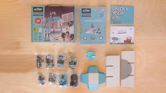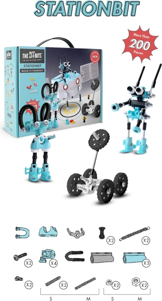 Verwandeln Sie Schrauben, Muttern und geformte Teile in eine beeindruckende Raumstation. OffBits StationBit bringt spielerisches STEM-Lernen – Kinder lernen auf unterhaltsame Weise die Prinzipien von Wissenschaft, Technologie, Ingenieurwesen, Kunst und Mathematik kennen. Dank mehr als 200 farbigen Komponenten, Aufklebern und der cleveren abfallfreien Verpackung, die Teil des Spiels wird, entsteht eine reiche Welt des Gestaltens und Entdeckens.