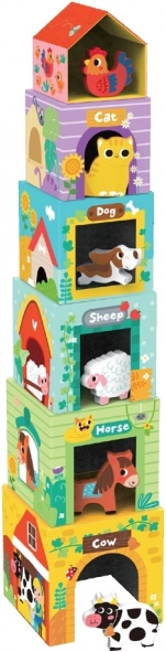 Bauklötze mit Tieren Bauernhof von 2Kids Toys sind für das Lernen und den Spaß der Kinder gedacht. Sechs Klötze bilden nicht nur einen Turm, sondern auch kleine Häuser für die Tiere. Jedes Tier hat seinen Platz und lehrt die Kinder, wie man richtig baut und Zahlen erkennt. Farben und Formen fördern die Erkennungsfähigkeit und Motorik.