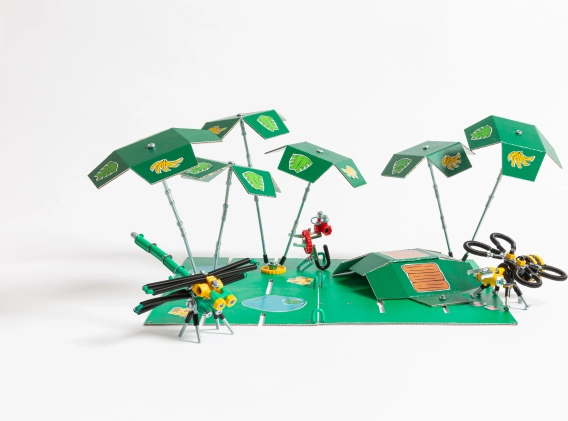 Tauchen Sie mit dem JungleBit Bausatz von OffBits in die Welt der Kreativität ein. Dieses Set ermöglicht das Erstellen von vier Grundmodellen: BeeBit, MonkeyBit und DragonflyBit, aber damit endet es längst nicht! Mit diesem Set können Sie verschiedenste weitere einzigartige Kreationen bauen und mit alltäglichen Materialien experimentieren. Der Bausatz fördert die Entwicklung von Fähigkeiten in den Bereichen Wissenschaft, Technologie, Ingenieurwesen, Kunst und Mathematik, während er zusätzlich hilft, die Feinmotorik und das logische Denken bei Kindern zu verbessern.