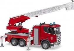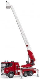 Entdecken Sie die faszinierende Welt der Feuerwehr mit dem Scania Feuerwehrfahrzeug, das mit allen notwendigen Details für realistisches Spielen ausgestattet ist. Das Kinder-Feuerwehrauto bietet verschiedene bewegliche Teile wie klappbare Spiegel, einen befüllbaren Tank und eine Halterung für Wasserzerstäuber am Leiterkorb.