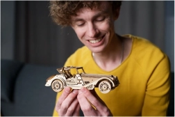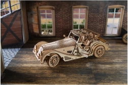 Das Modell besticht durch einen detaillierten Innenraum, öffnende Seitentüren, ein manuell bedienbares Festdach mit Schiebedach und ein funktionierendes Reserverad im Kofferraum. Im Set ist alles enthalten – die Teile sind vorgestanzt und der Zusammenbau gelingt mit der bebilderten Anleitung in 11 Sprachen. Belassen Sie das natürliche Holz oder bemalen Sie das Fahrzeug nach Ihrer Fantasie.