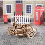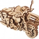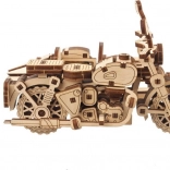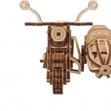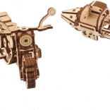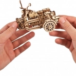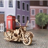 Bauen und bewegen Sie das Motorrad dank einer cleveren Konstruktion aus Zahnrädern und Gummielementen – alles sauber, ganz aus Holz.