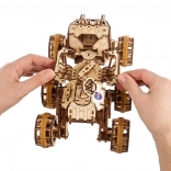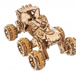 Dieses detaillierte mechanische Modell eines Mars-Rovers überzeugt durch ein cleveres Design mit Allradantrieb auf sechs Rädern (6x6), Federmotor und vollständig unabhängiger Federung. Eine Kabine für zwei „Astronauten“, ein gelenkiges Verbindungsstück zur Karosserie für bessere Stabilität, lenkbare Vorderräder und eine klappbare Heckrampe sorgen für ein realistisches Erlebnis eines äußerst fähigen Geländeerkunders. Die Bedienung ist dank des Schiebeschalters Start/Stop und des Ratschenschlüssels zum Aufziehen des Motors einfach.
