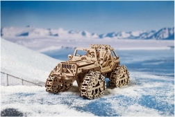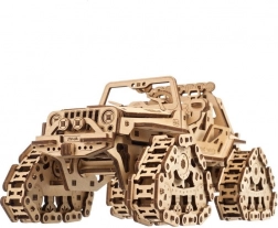 Tauchen Sie ein in die Welt der feinen Mechanik und entdecken Sie das Ketten-Geländefahrzeug von UGEARS, das spielerische Ingenieurskunst mit der handwerklichen Schönheit von natürlichem Holz verbindet. Den Antrieb übernimmt ein Gummibandmotor mit Ratschenmechanismus, mit Schaltung zwischen D (Drive), S (Sport) und P (Parking); für stabile Fahrt sorgt ein hinteres Pendel. Die zu öffnende Motorhaube gibt den „Motor“ frei, die offene Kabine unterstreicht die realistische Ausführung, und Ketten im Stil von Mattracks/Rubtrack machen das Modell zum echten Offroader.