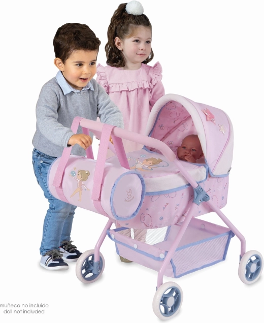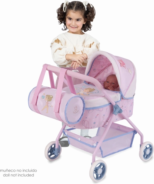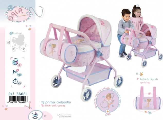 Der niedliche Puppenwagen aus der GALA-Kollektion vereint elegantes spanisches Design, hochwertige Verarbeitung und praktische Lösungen für den täglichen Spielspaß. Dank der niedrigen Griffhöhe und der leichten Konstruktion lässt er sich von Kindern zu Hause und draußen sehr leicht schieben.
