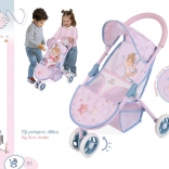 Der niedliche rosa-weiße Puppenbuggy GALA überzeugt mit modernem Sport-Look und einer leichten Konstruktion aus Metall und Kunststoff. Dank der Griffhöhe von 55 cm ist er ideal für kleinere Kinder ab 3 Jahren. Das schwenkbare vordere Zwillingsrad ermöglicht sanftes Kurvenfahren, und der 3-Punkt-Gurt hält die Puppe sicher an ihrem Platz.