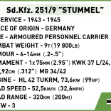 Dieses realistische Modell des Halbketten-Transporters Sd.Kfz. 251/9 „Stummel“, ausgerüstet mit der kurzrohrigen 7,5-cm-Kanone Stu.K.37, wurde im präzisen Maßstab 1:35 umgesetzt und passt perfekt zur COBI Historical Collection. Dank farbiger Tarnprints, beweglicher Ketten und Räder mit Gummireifen bietet der Bausatz sowohl authentisches Aussehen als auch hervorragende Spielbarkeit.