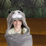 Diese designstarke Kinderdecke verbindet Komfort, Spaß und Praktikabilität. Sie ist aus superweichem Fleece gefertigt, der zum Einkuscheln einlädt und angenehme Wärme spendet. Dank Kapuze und Pfoten-Taschen wird die Decke zu einem unterhaltsamen Accessoire zum Spielen und Entspannen, das Kindern ein Gefühl von Geborgenheit geben kann.