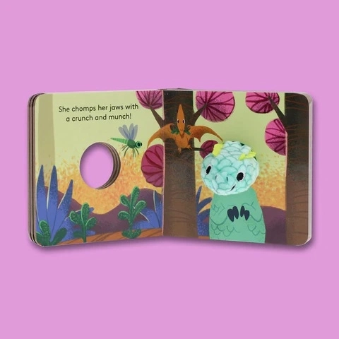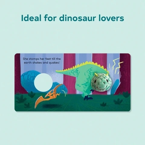 Das Handpuppenbuch "Junges T-Rex" ist ideal für Kinder, die die Welt der Dinosaurier entdecken möchten. Es erzählt die Geschichte eines kleinen T-Rex-Mädchens, das davon träumt, der größte und frechste Dinosaurier zu sein.