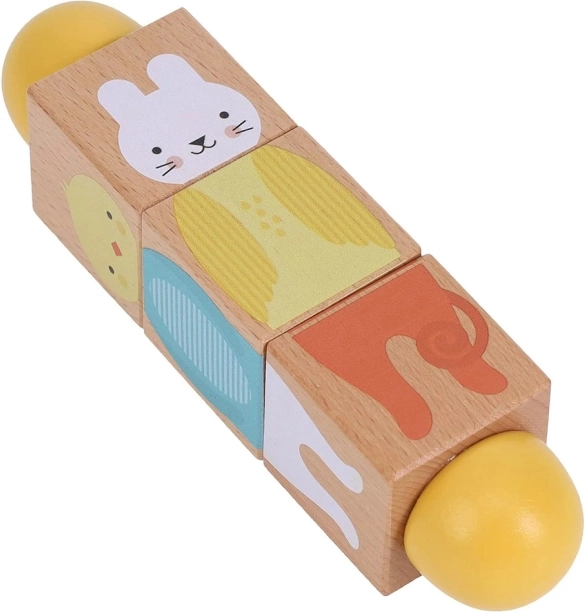 Dieses stylische und robuste Spielzeug verbindet Spaß mit Lernen. Durch das Drehen der drei Holzwürfel setzen Kinder die richtigen Tierteile zusammen oder erschaffen lustige Kombinationen. Dank der glatten Verarbeitung liegt das Spielzeug gut in der Hand und ist ideal für kleine Kinderhände.