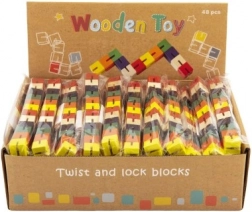 Klassisches Holzpuzzle in Form einer Schlange, ideal zur Förderung der Feinmotorik bei Kindern. Möglichkeiten, verschiedene Formen durch Drehen der Teile zu gestalten.