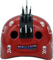 Dieser Helm wurde speziell für Radfahrer, Skateboarder und Inlineskater entwickelt, die auf Stil und Sicherheit achten. Die rote Piratenvariante bietet Funktionalität und Komfort: