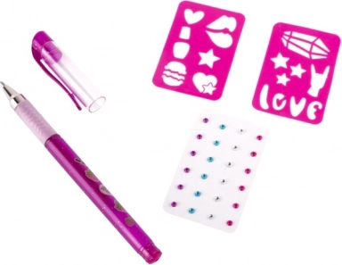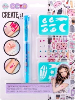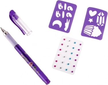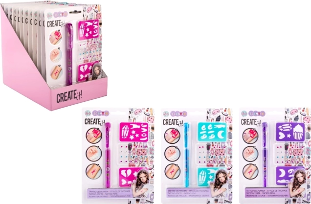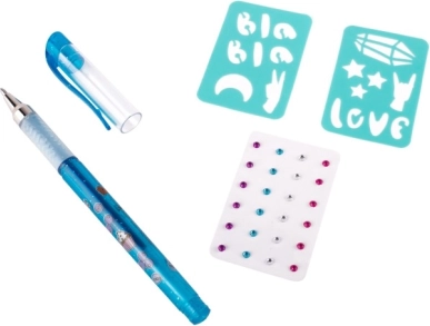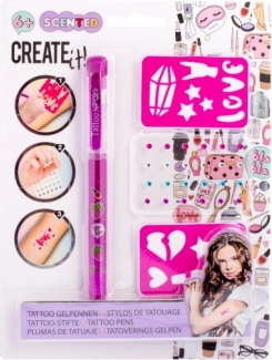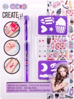 Tätowier-Set mit duftendem Gelstift – das Set enthält einen duftenden Gel-Tätowierstift – 3 verschiedene Farben, selbstklebende glitzernde Steinchen und zwei Schablonen.