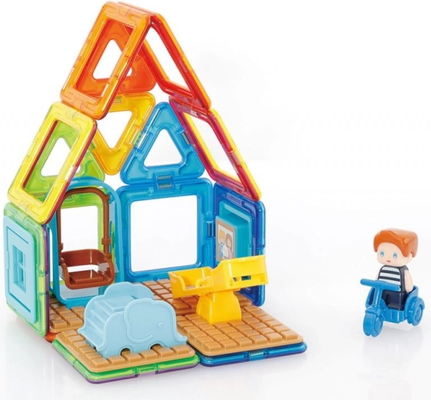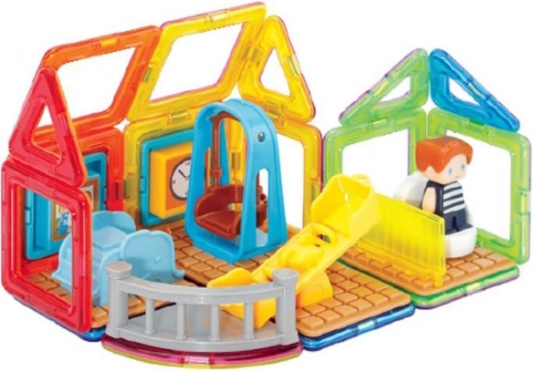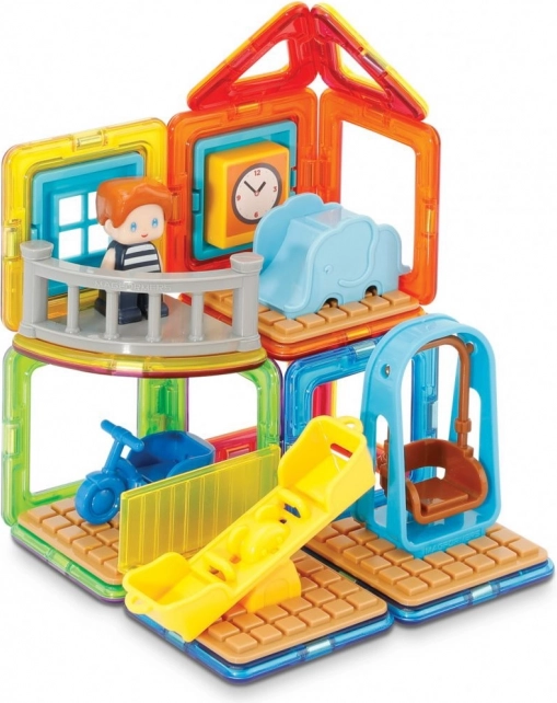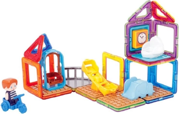 Viel Spaß mit Max und seinem Spielplatz. Das kreative magnetische Konstruktionsset ermöglicht das Bauen zahlreicher dreidimensionaler Objekte mithilfe zweidimensionaler Kunststoff-Polygone. Magformers fördert die Feinmotorik, regt die Kreativität an und bringt Kindern Farben sowie grundlegende geometrische Formen bei. Die Abmessungen der Teile und die sorgfältig gewählten Formen gewährleisten maximale Sicherheit des Spielzeugs. Das Material, aus dem das Set hergestellt ist, erfüllt die strengsten Hygiene- und Gesundheitskriterien. Die Teile sind ausreichend groß, können nicht verschluckt werden und sind praktisch unzerbrechlich. Verpackungsinhalt: